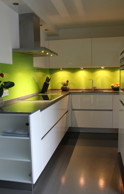 LiGRo interieurs biedt de mogelijkheid deze achterwand geheel van glas te maken. U geeft aan wat glas moet zijn, wij meten in, geven U een offerte en als U accoord gaat plaatsen we voor U een compleet glazen keukenachterwand.